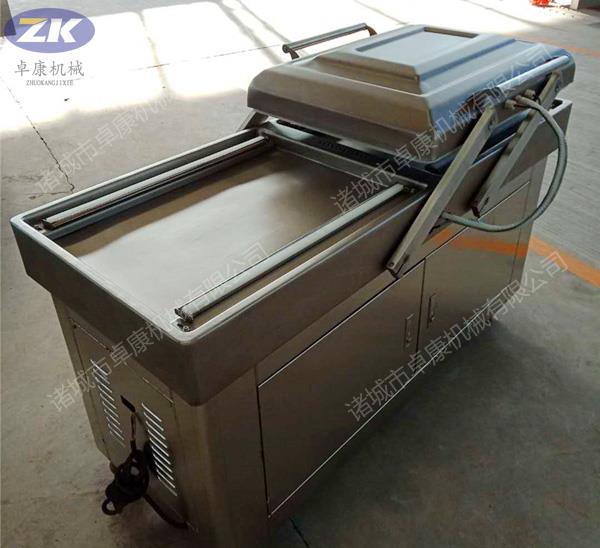 雙室真空包裝機(jī)是包裝機(jī)的一種,利用其真空室對包裝進(jìn)行抽空,然后再充入惰性氣體以達(dá)到防腐保質(zhì)的目的。全自動雙室真空包裝機(jī)專為包裝含水量大的產(chǎn)品而設(shè)計,采用日本控制線路,吸取國外同行業(yè)的先進(jìn)技術(shù)經(jīng)驗,其電器方面采用微電腦控制器全程控制,它具有防水、防潮、故障率低、使用壽命長等優(yōu)點,這些優(yōu)點使該設(shè)備便于清洗,就算用水直接沖洗也不會發(fā)生任何電器故障,架體采用國際標(biāo)準(zhǔn)食品用304不銹鋼板,強(qiáng)度高,不易破損,它獨(dú)特的傾斜臺面設(shè)計,可以保證產(chǎn)品內(nèi)的水份不流失,從而使產(chǎn)品的含水真空包裝更易操作。